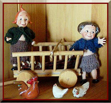 30 cm große Googlys als Witwe Bolte und Schneider Böck